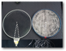 The bottom of the target pad holds flat conductive rings with small spacing. A meshed plastic/fabric provides spacing with the conductive top layer.